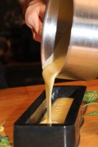 Retire la casserole du feu, incorpore ta feuille de gélatine préalablement hydratée et ajoute 70g de beurre, mixe le tout.