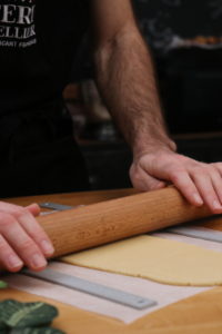 Une fois refroidie, étale ta pâte à 3 mm d’épaisseur. Tu peux t’aider de règles à niveler pour un travail précis et professionnel.