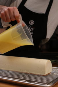 Le chef utilise dans cette recette notre kit de glaçage avec la grille et le bac. Il est très pratique pour ne pas en mettre partout.
